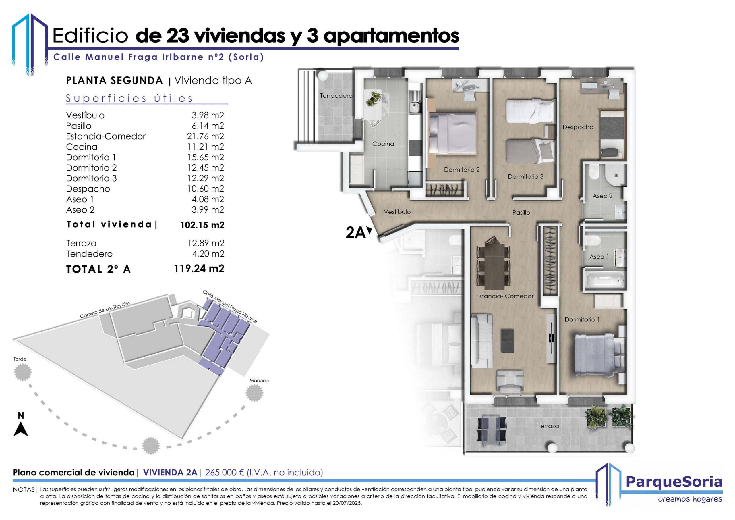 Piso en Planta Segunda de 4 dormitorios con terraza y con la mejor orientación.